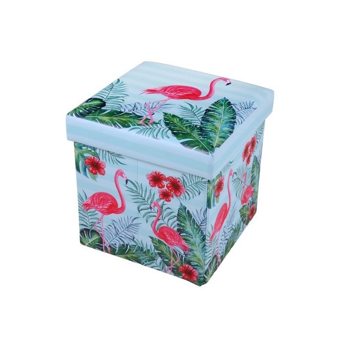 Puff Baú Mini com Tampa Flamingos 30cm x 30cm