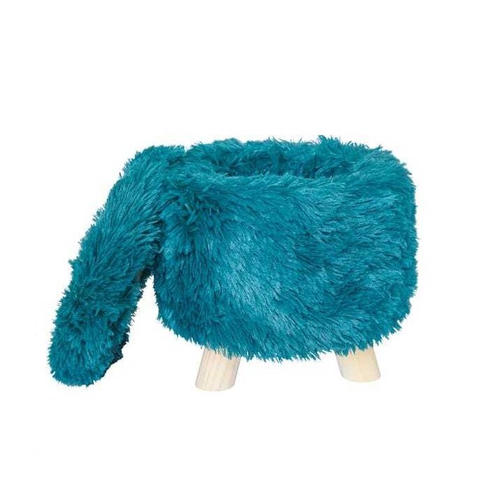 Puff Baú Pelucia Felpudo Redondo Azul Turqueza e Tampa Banqueta