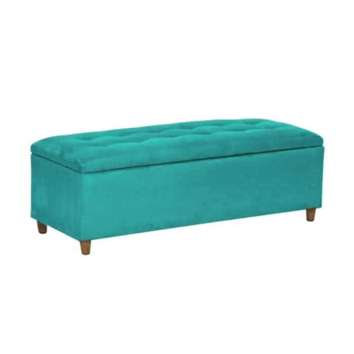 Puff Baú Recamier Pés Palito Suede Acqua 1,5M - Casa Renovo