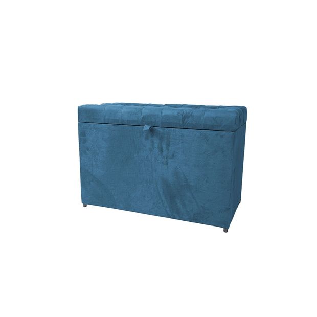Puff Baú Retangular 2 Lugares Azul Aço Azul