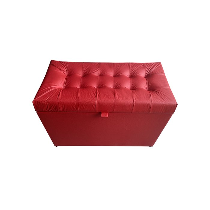 Puff Baú Retangular Estofado C/ Pistão À Gás - Vermelho Corino Vermelho