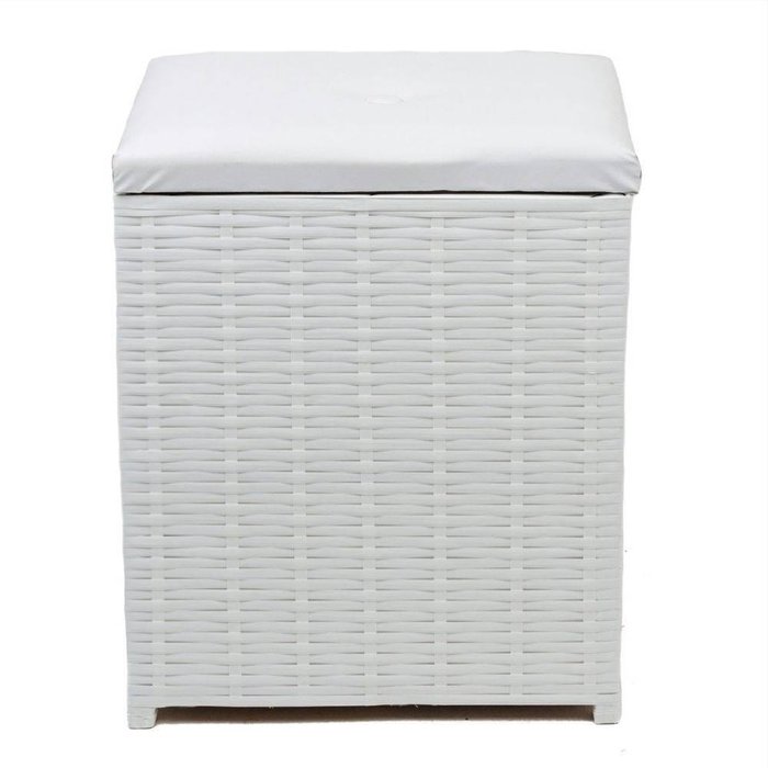 Puff Baú Retangular Fibra Sintética 40x30x49 Branco com Tampa Branca