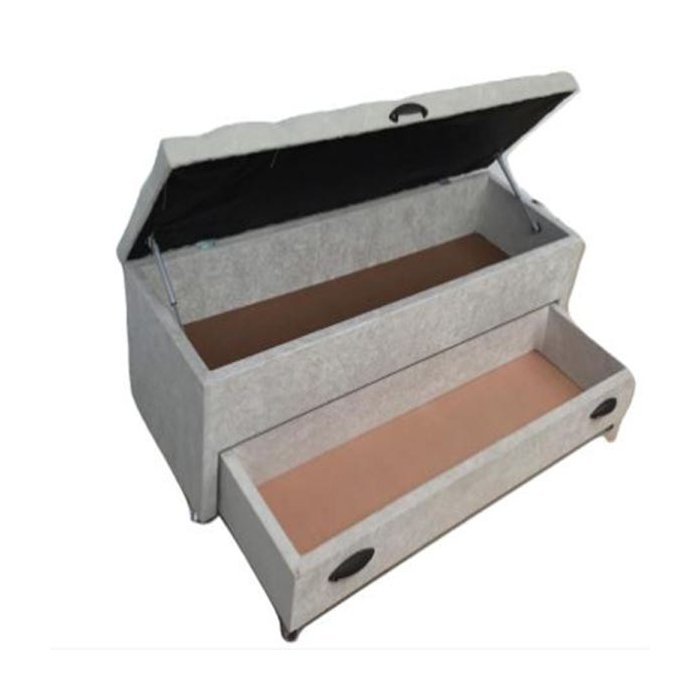 Puff Baú Sapateira Queen Suede Bege 48x158x45