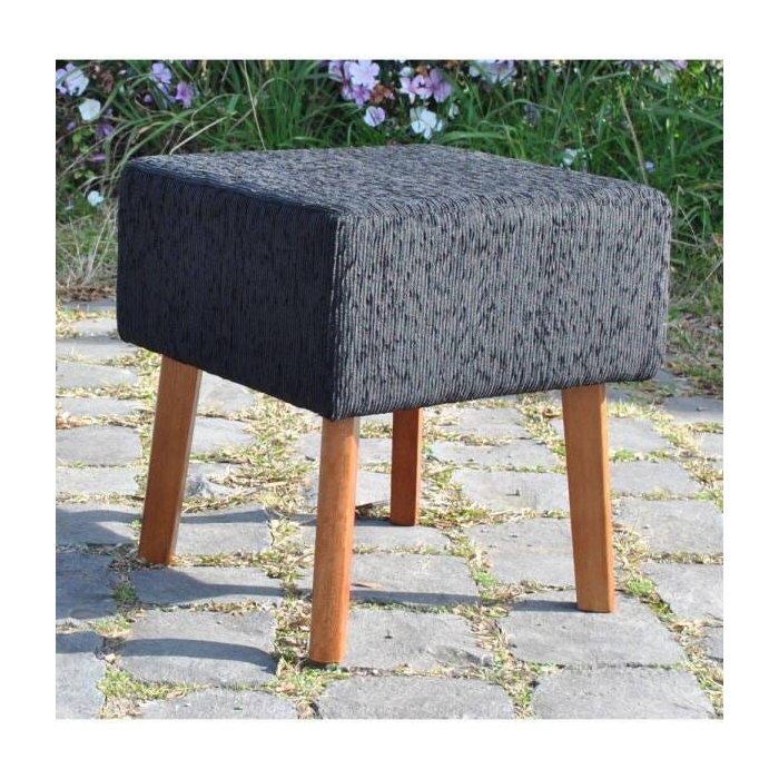 Puff Chantal Quadrado Chenile Preto Pes Madeira Macica Eucalipto Fino Móveis