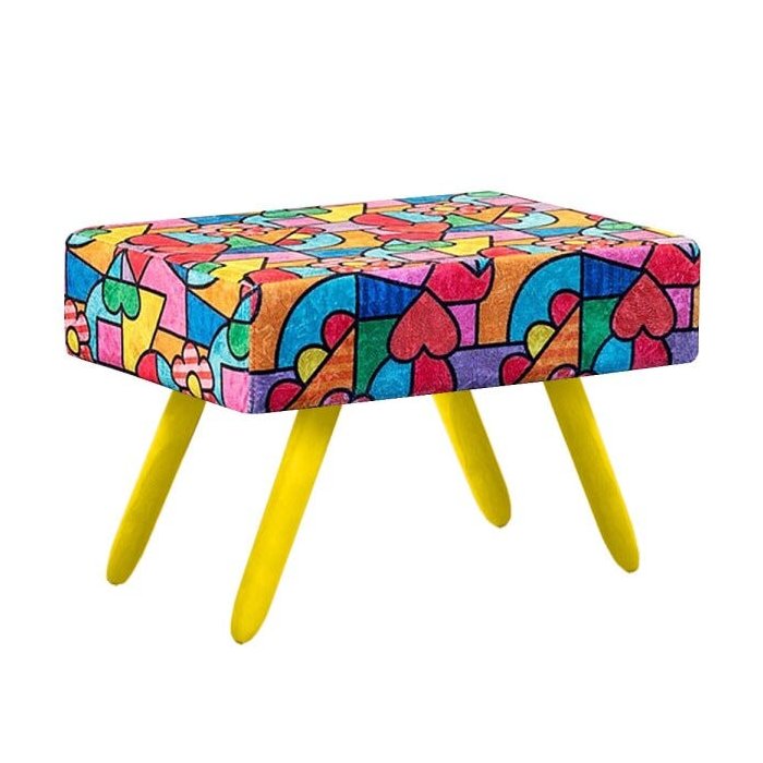 Puff Charme Estampado Romero Britto D15 Pés Palito Amarelo D'Rossi