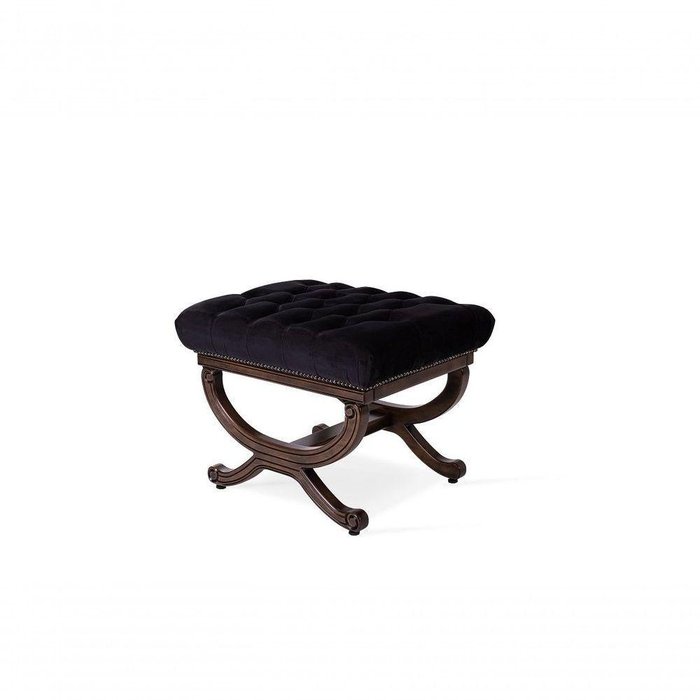 Puff Clássico Entalhado Londres Tecido em Capitonê e Acabamento com Tachas, Desing de Luxo- Personalizável Imbuia Envelhecido - 69012 -