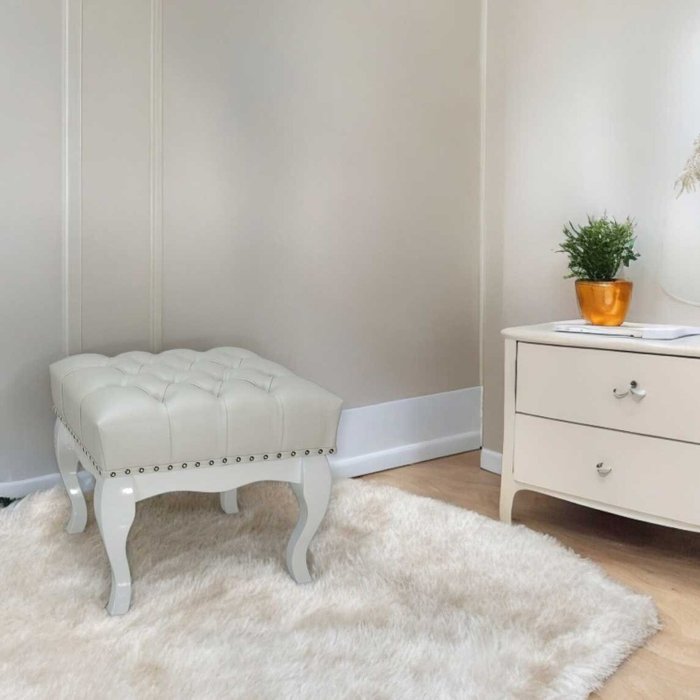 O Puff Closet Multiuso Pequeno Luna, tem curvas lindas e é feito de madeira maciça, trabalhado a mão, o seu estofamento em capitonê chama a atenção e se destaca. O seu acabamento feito com tachas da mais ênfase ao seu tecido facto na cor branco. Pode ser usado em salas ou quartos em sua penteadeira, por exemplo.