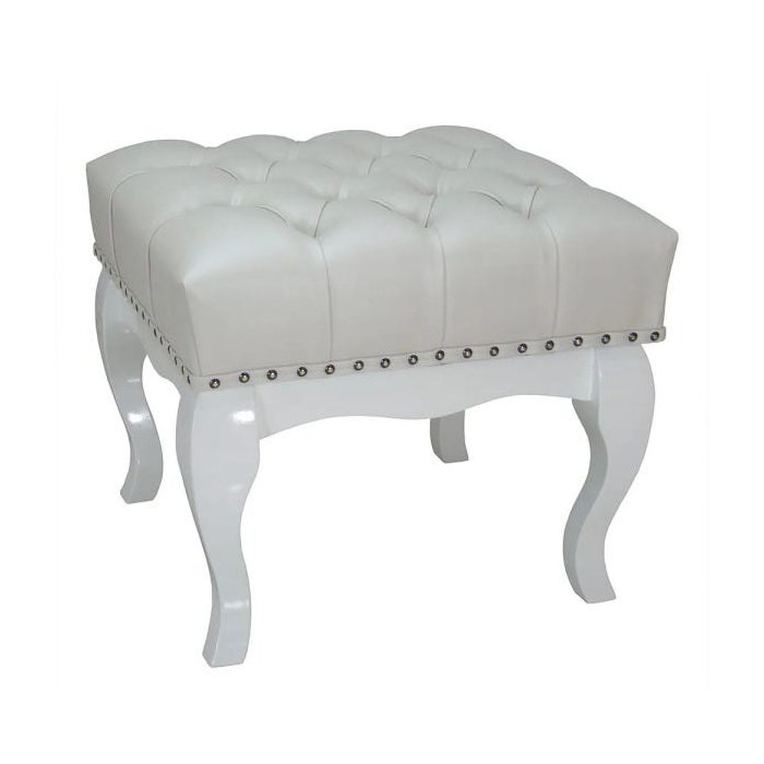 Puff Closet Multiuso Pequeno Madeira Maciça Branco com Tachas Luna