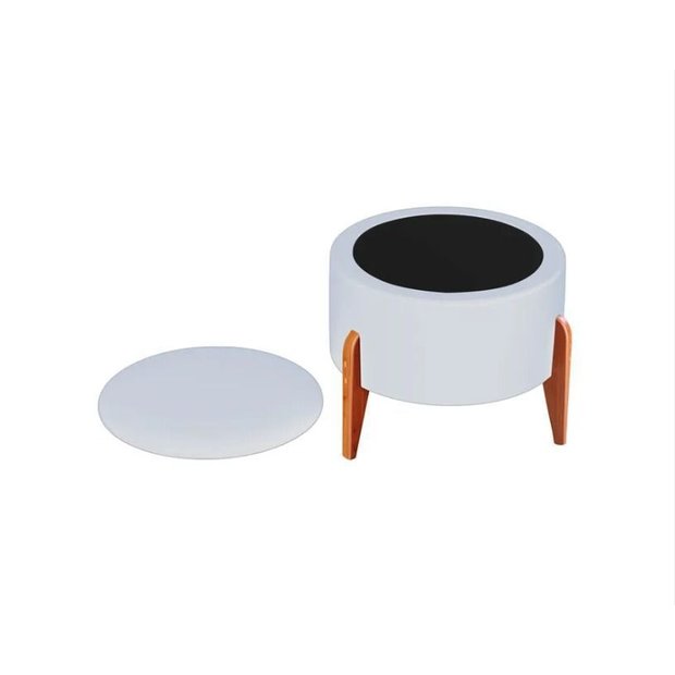Puff com Baú Duo Redondo em Tecido Tipo Corino Branco