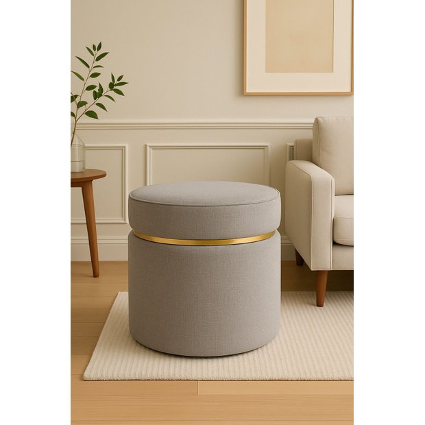 Puff com Cinta Dourada Superior Tecido de Linho CINZA