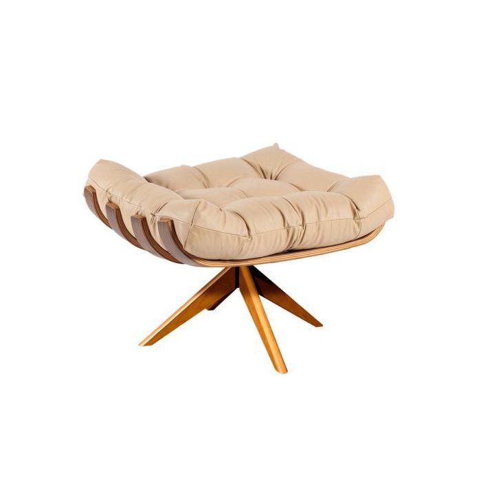 Puff Costela Couro Legítimo Base Metal Preto - Couro Bege
