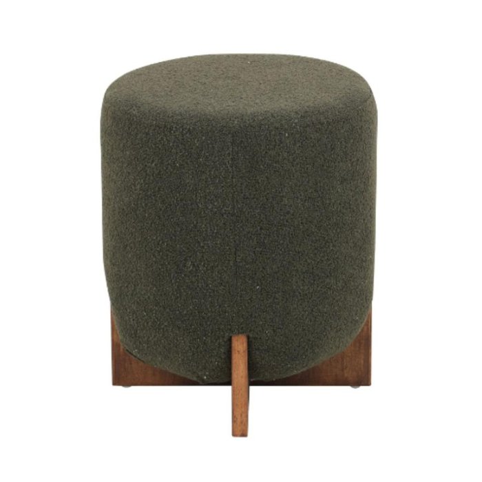 Puff Cravo Rivatti 48,50 Cm (altura) Estofado Bouclé Verde Escuro com Base em Madeira de