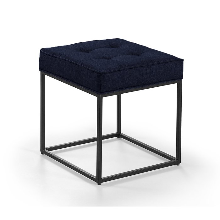 Puff Croata Quadrado em Linho para Sala - Blue Jeans