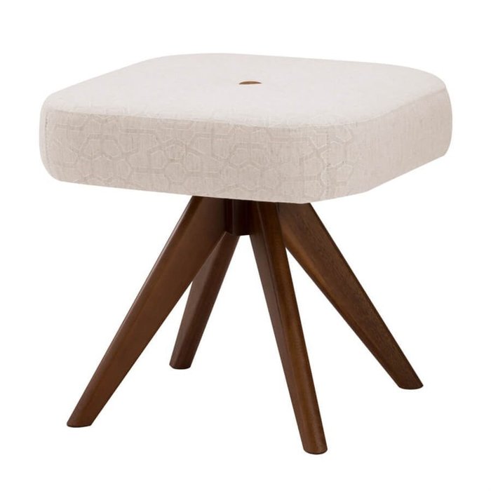 Puff Dan C/ Pés de Madeira Linho Estampado Bege OOL Linho Estampado Bege Braier Móveis