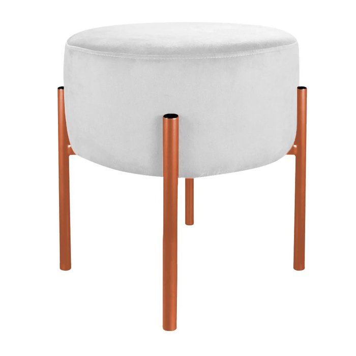 Puff de Luxo Suede Branco Base Metálica Cobre - Vallisa Decor