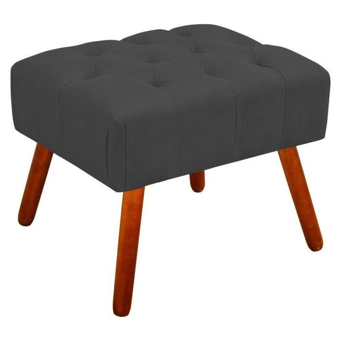 Puff Decorativo Anne Capitonê Suede Grafite Pés Palito