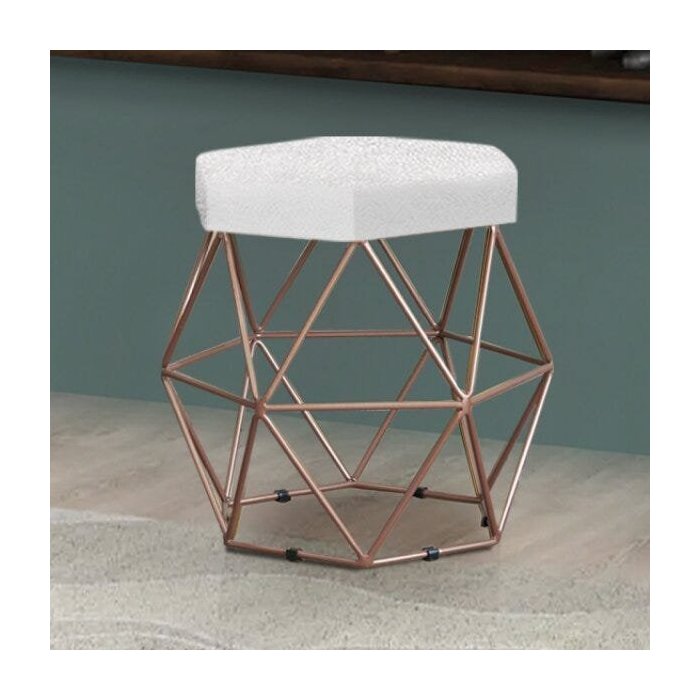 Puff Decorativo Aramado em Corino Diamond Branco/Bronze
