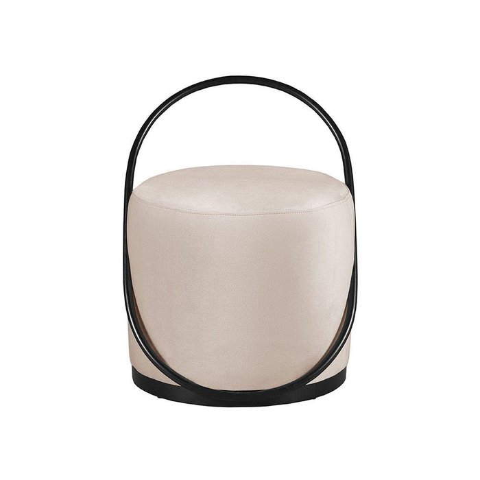 Puff Decorativo Asterix Redondo Madeira Maciça Veludo Mac Preto E Bege