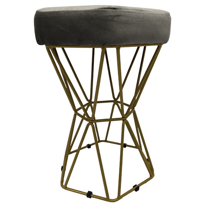 Puff Decorativo Hexágono Diamante Veludo Cinza Camurça Base Dourado