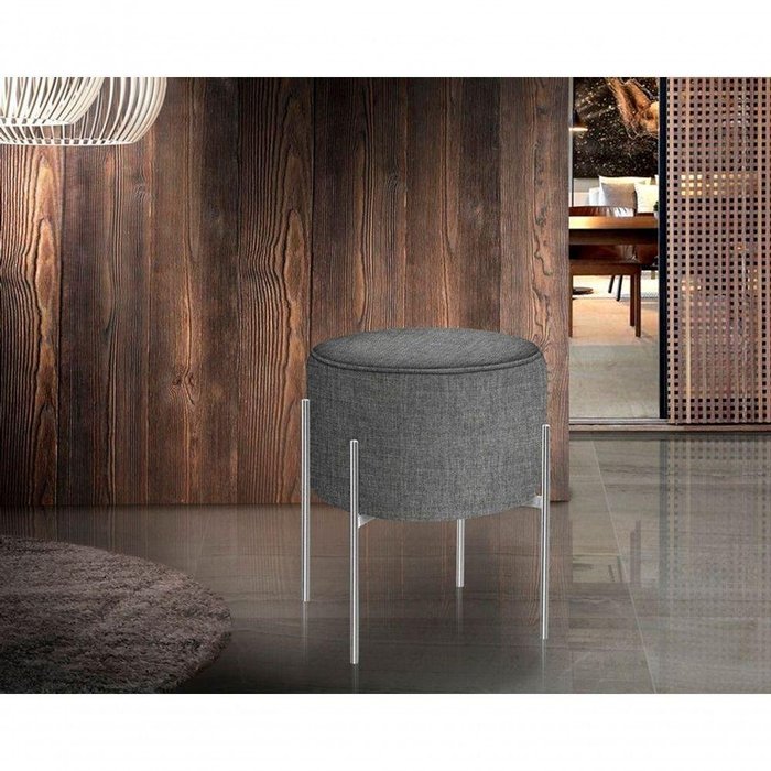 Puff Decorativo Liz Com Pé De Ferro Cromado Linho Escuro Cinza