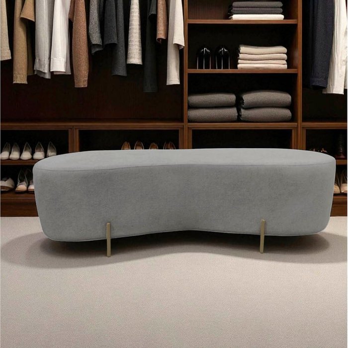 Puff Decorativo Orgânico Alana Bouclé Cinza Claro