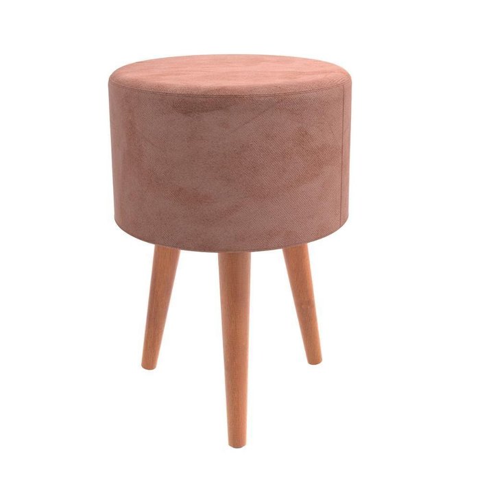 Puff Decorativo Redondo Pés Palito Veludo Rose
