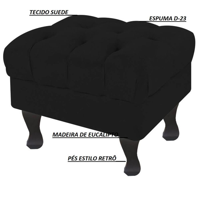 Puff Decorativo Retro Luiz XV com Baú Preto 60 para sentar