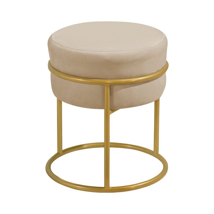 Puff Decorativo Sala de Estar Agata Base Dourada Veludo Palha