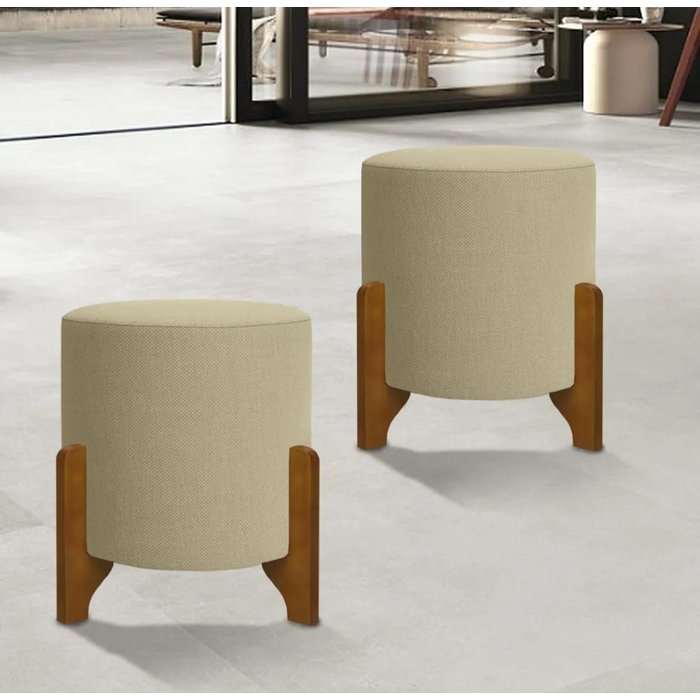 Puff Decorativo Sala De Estar Cléo Luxo Linho Bege Bege