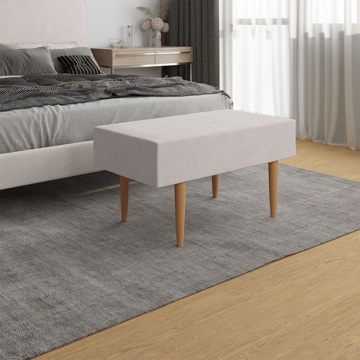 Puff Decorativo Turim Boucle PU Bege