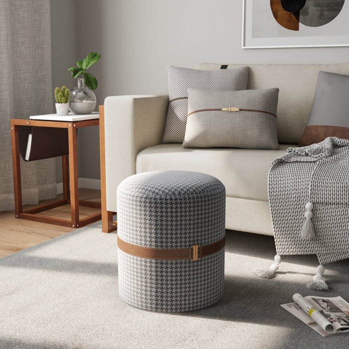 Puff em Algodão Pied de Poule Aston Cinza