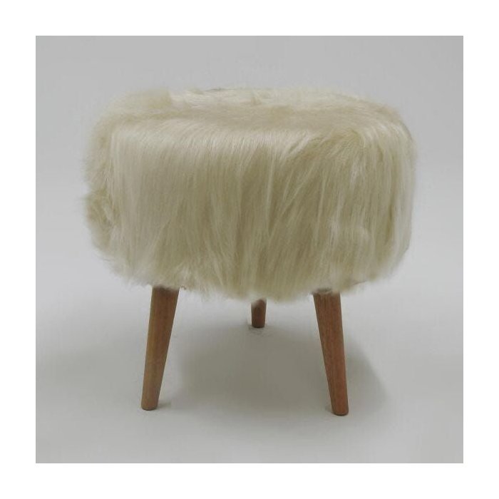 Puff Estofado Pelúcia Bege Base Natural Pf7002 - Tecno Mobili
