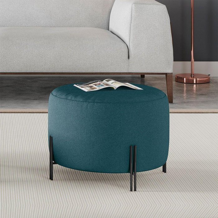 Puff Girassol Revestimento Em Linho Mais Decor Preto/azul