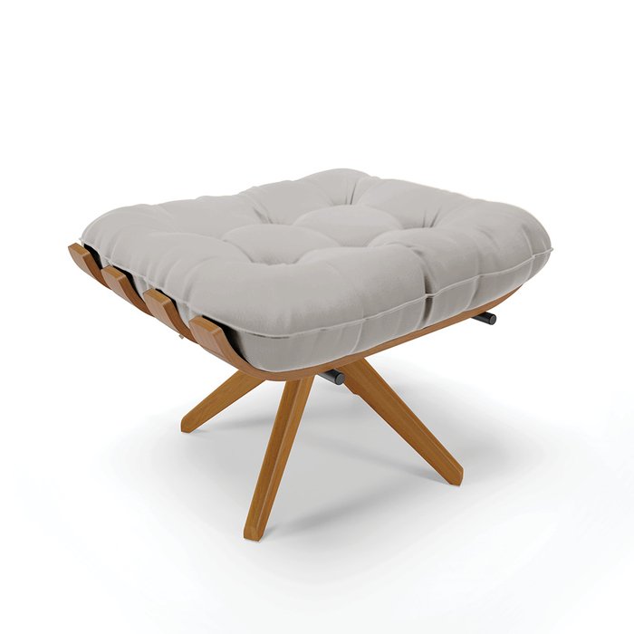 Puff Giratório Costela Veludo Base Madeira MA25 - D'Rossi - Cinza