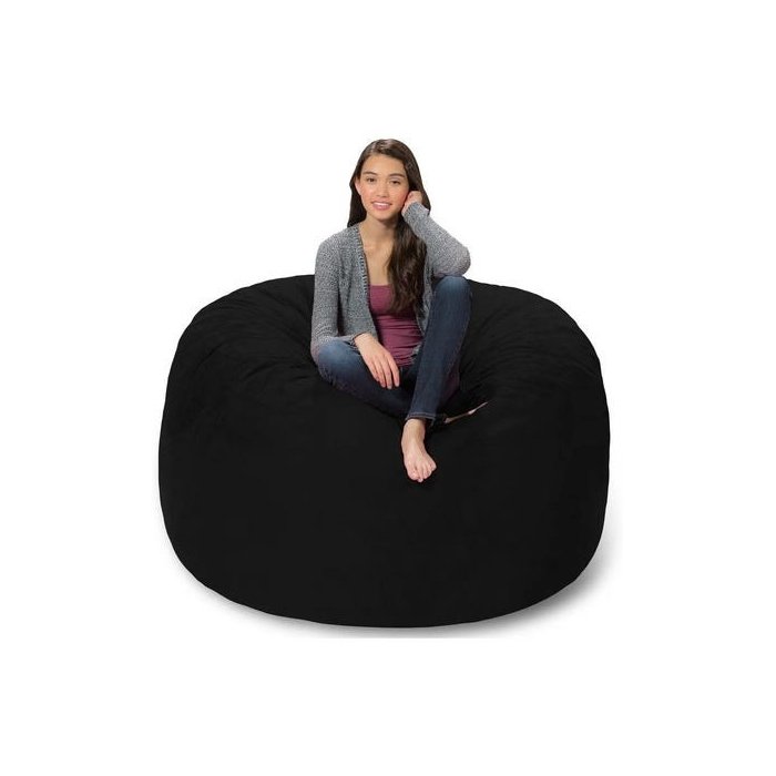 Puff Grande Redondo Gigante sem Enchimento em Suede 1M para Sala - Preto