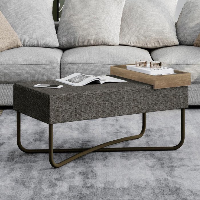 Puff Grande Sala de Estar Bege com Bandeja Tubos Ouro Velho Carraro