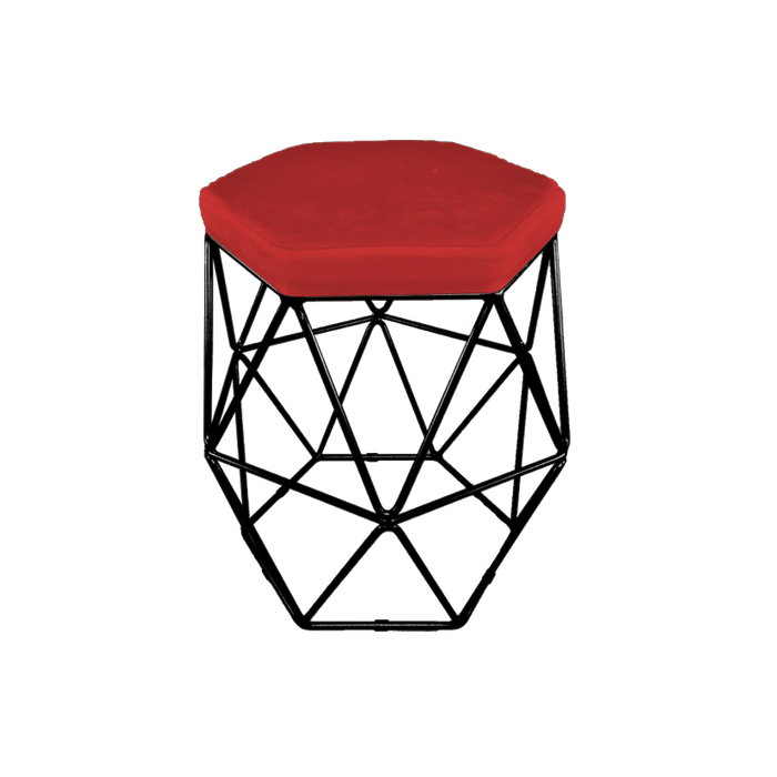 Puff Hexagonal Base Preta Assento Suede - Iron Decor Suede Vermelho