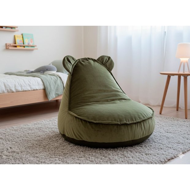 Puff Infantil Urso Criança com Enchimento de Espuma - Tecido Veludo Verde Verde