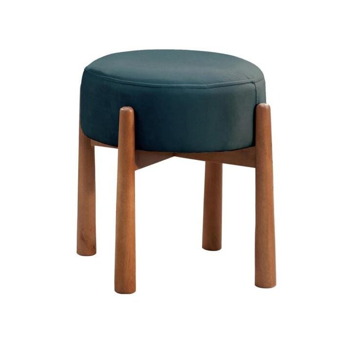 Puff Lotus Luxo Madeira Maciça Tecido Linho Azul
