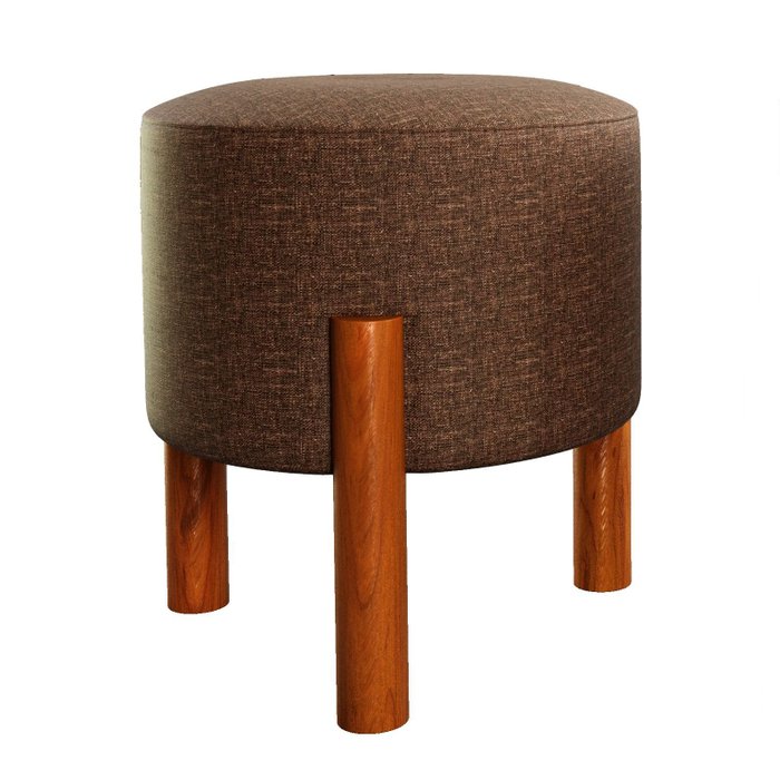 Puff Lucca Marrom Pés Palito Decorativo Recepção Redondo em Linho Cru Marrom
