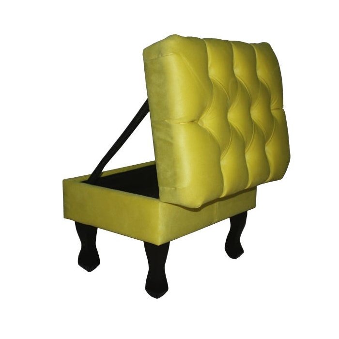 Puff Luis XV Retro Baú Capitone Sala Estar Salão Beleza - Suede Amarelo