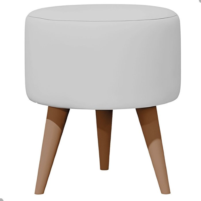 Puff Madri Banqueta Redonda em Linho Pés Eucalipto Pufe Sala:branco