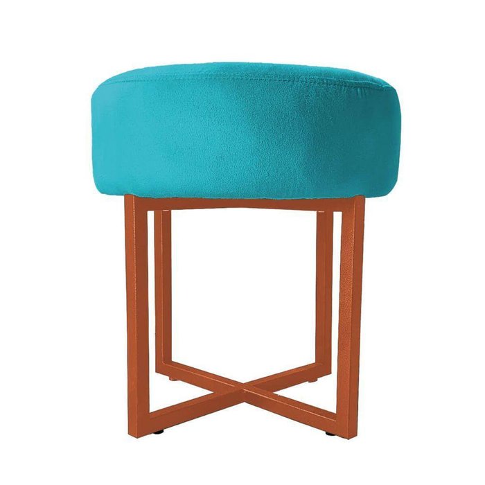 Puff Decorativo Madrid Luxo Bronze Assento Suede Azul Turquesa - Folk Móveis