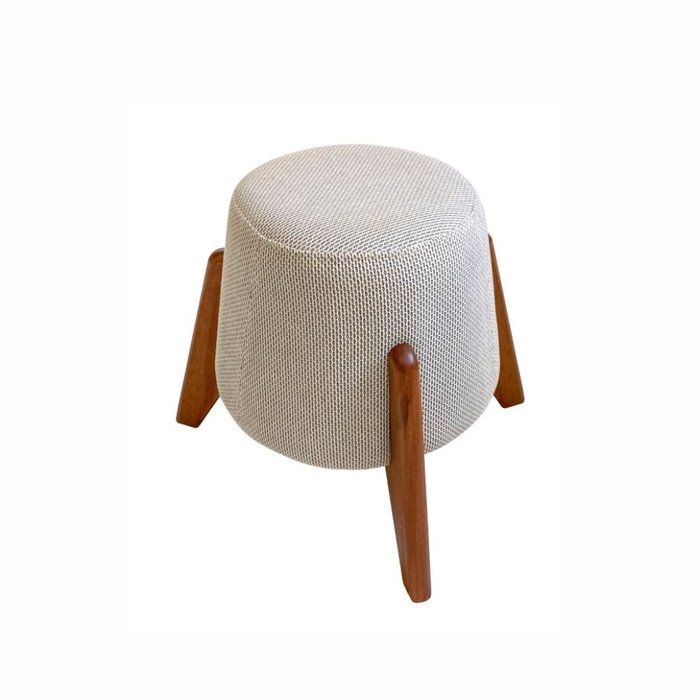 Puff Malibu Decorativo com Linho Bolonha e Pés em Madeira