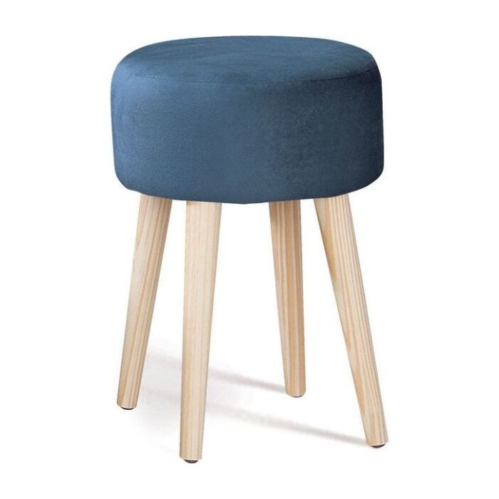 Puff Moeda Azul Marinho com Base de Madeira - Daf