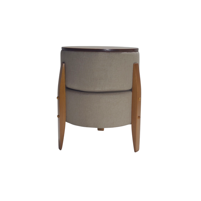 Puff Mumbai Estofado Redondo Vira Mesa Pés Madeira Maciça Bege