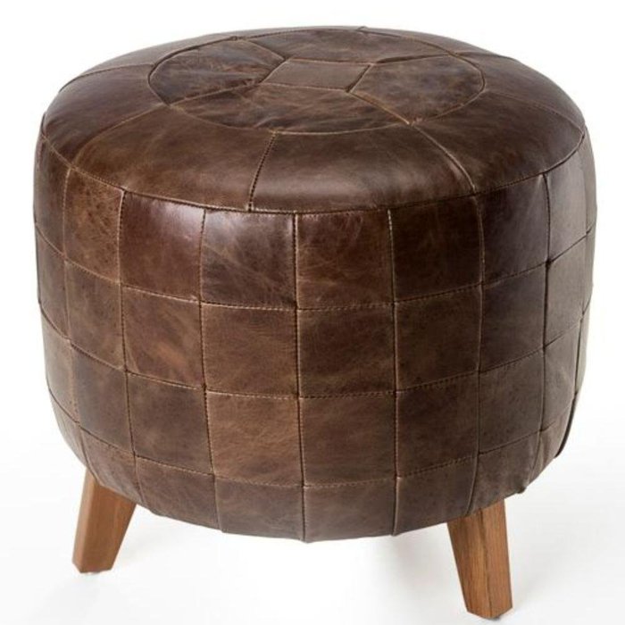 Puff Patchwork Mh-9812 Herval Redondo Madeira Eucalipto Estofado em Marrom Pé Alto Madeira Amêndoa Marrom