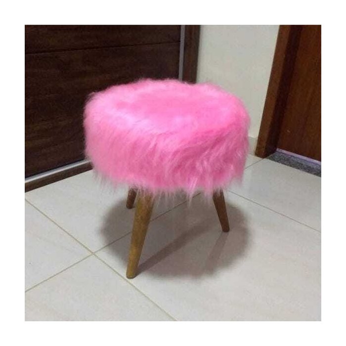 01 Puff Peludo 45cm x 40cm x 40cm e 3 Pés em Madeira.