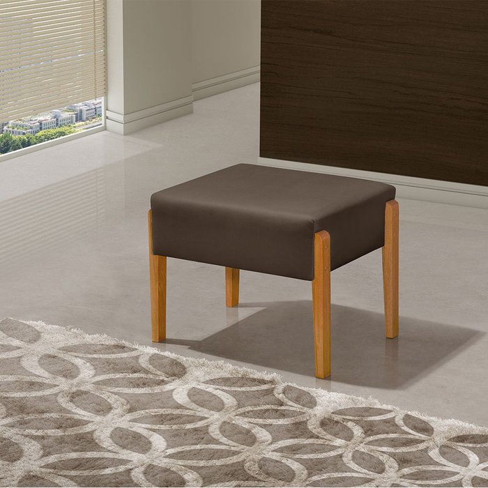 Puff Pés em Madeira Maciça Isla Veludo Marrom