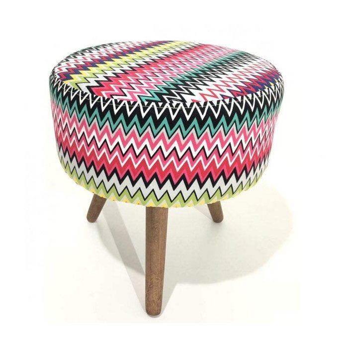Puff Pés Palito Redondo Cambuí Estofados Chevron Rosa
